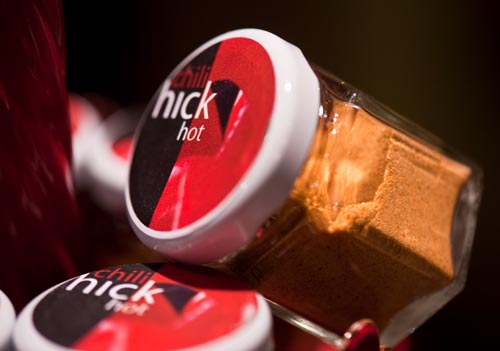 Obwohl der Pfefferoni = Chili sicher schon seit Jahrhunderten in den Wachauer Hausgärten beheimatet ist die Entstehungsgeschichte des „Wachauer Chilis“ in Pulverform eine relativ Junge. Eine Überproduktion von Chili-Pflanzen im Jahr 2004 führte dazu, dass man die Pflanzen auspflanzte, die Schoten trocknete und zu feinem Pulver mahlte. Trotz der Vorliebe der ganzen Familie Hick für scharfes Essen war das Ergebnis dann doch etwas zuviel für den Eigenverbrauch. So wurden im Jahr 2005 die ersten Gläser gefüllt und den Kunden in der Gärtnerei angeboten. Was mit einer Sorte und einfachen Mitteln begann, wird ständig ausgebaut und verfeinert. So wurden die ersten Schoten noch im Heizhaus getrocknet und mit einer alten Kaffeemühle gemahlen. Heute werden die vollreifen Schoten nach der Ernte händisch geschnitten, einzeln auf ihre Qualität kontrolliert und dann mit der Kraft der Sonne in einem großen Solartrockner schonend getrocknet. Nach dem Trocknen werden die Schoten luftdicht verpackt und je nach Bedarf fein gemahlen. Auch das Mahlgut wird in Aromaschutzbeuteln luftdicht und dunkel gelagert, ehe es in Gläser und Dosen abgefüllt wird. Da viele Kunden der Gärtnerei Hick auch unterwegs nicht auf die gesunde Schärfe aus der Wachau verzichten wollen, werden manche Sorten neben dem, für die Küche sehr beliebten Glas, auch in flachen runden Dosen angeboten. Zum Selbermahlen gibt es Schoten im Aromaschutzbeutel in drei Sorten.